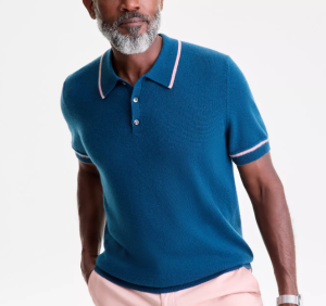 $29.99 100% Cashmere Sweater Polo Shirt, Blue and White available