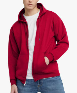 $10 Hanes Men’s Full-Zip Eco-Smart Hoodie (Deep Red)